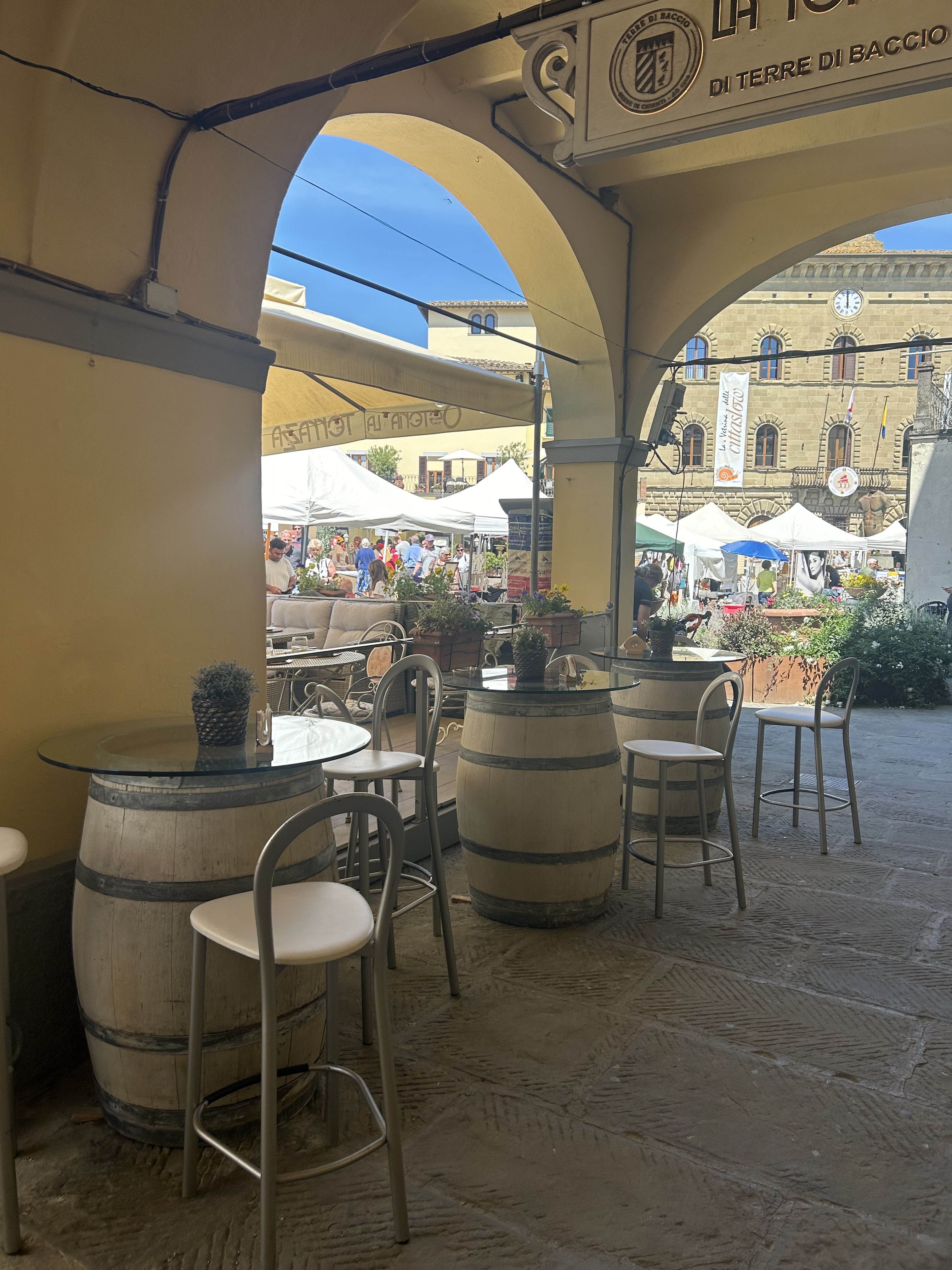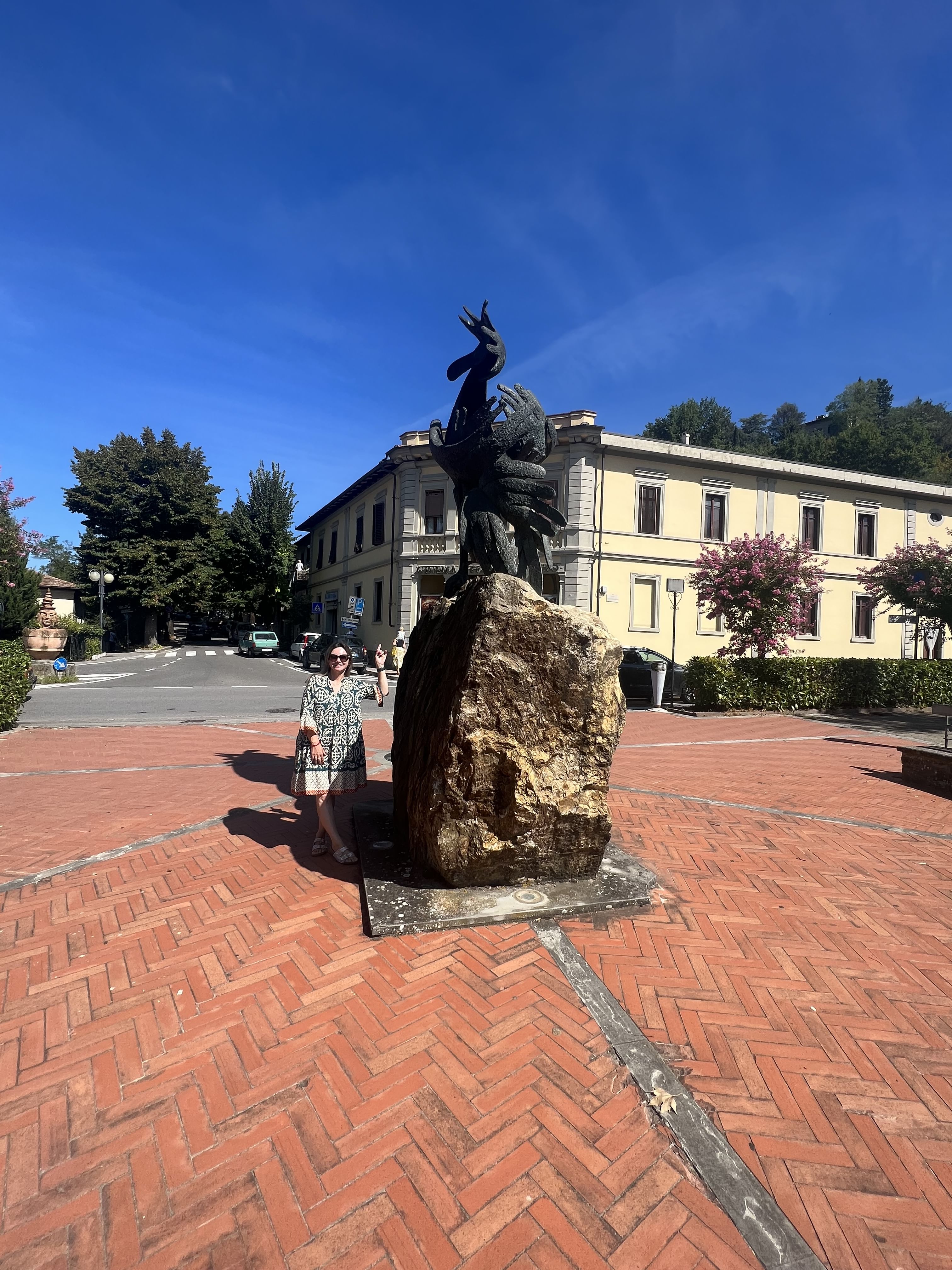 Piazza Matteotti : A praça central é o coração de Greve in Chianti, cercada por lojas, cafés e restaurantes. Aqui vamos visitar a Macelleria Falorni, onde você poderá comprar os melhores affettati para levar para casa ( eles embalam de forma que é possível levar no avião). Depois seguiremos para uma Enoteca subterrânea, a maior do Chianti com mais de 1.000 rótulos selecionados .