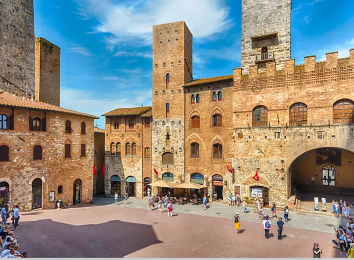 A Manhattan da Idade média. Iremos explorar San Gimignano com a bela Piazza del Duomo, admirando a imponente Catedral de Santa Maria Assunta e seus afrescos medievais, bem como a Piazza della Cisterna, cercada por torres medievais e repleta de charmosas lojas de artesanato local. Você também conhecerá a fascinante história desta cidade belíssima.