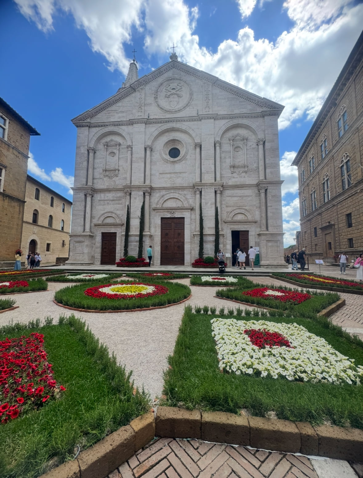 Fundada no século XV pelo Papa Pio II, que queria transformar sua cidade natal em um exemplo de cidade ideal do Renascimento, Pienza é conhecida por sua arquitetura renascentista bem preservada.