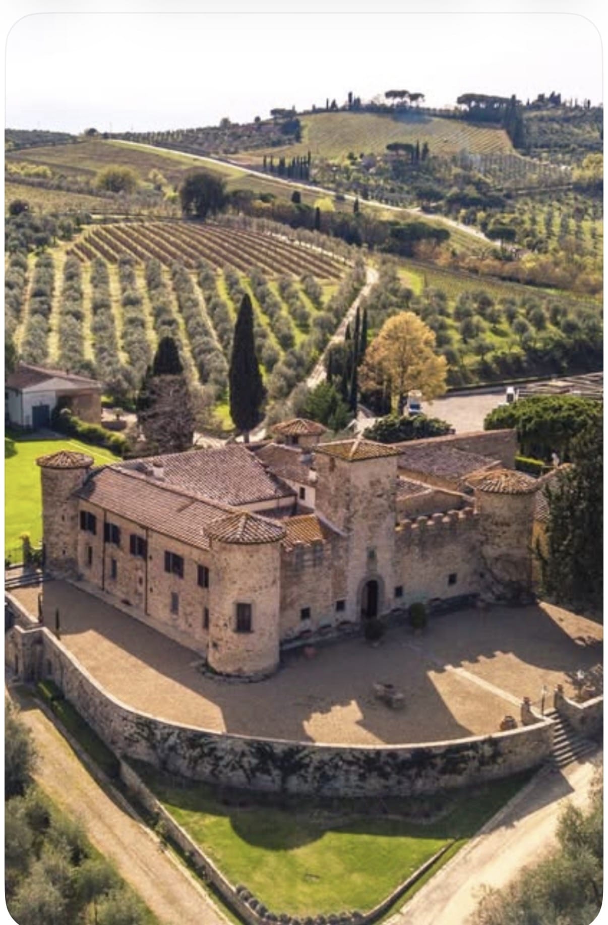 O Castello é uma propriedade histórica do século XII, cercada por vinhedos e oliveiras no cenário clássico das colinas do Chianti Classico. Com sua arquitetura imponente, pátios internos elegantes e jardins italianos, o castelo oferece uma atmosfera autêntica e sofisticada, perfeita para uma experiência verdadeiramente exclusiva.