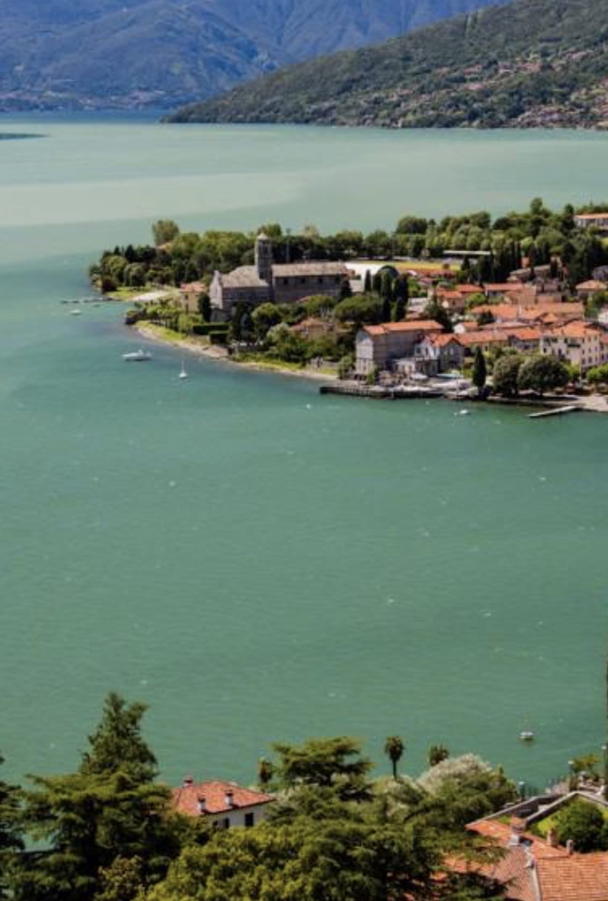 das águas cristalinas do lago, das magníficas vilas e das paisagens exuberantes.